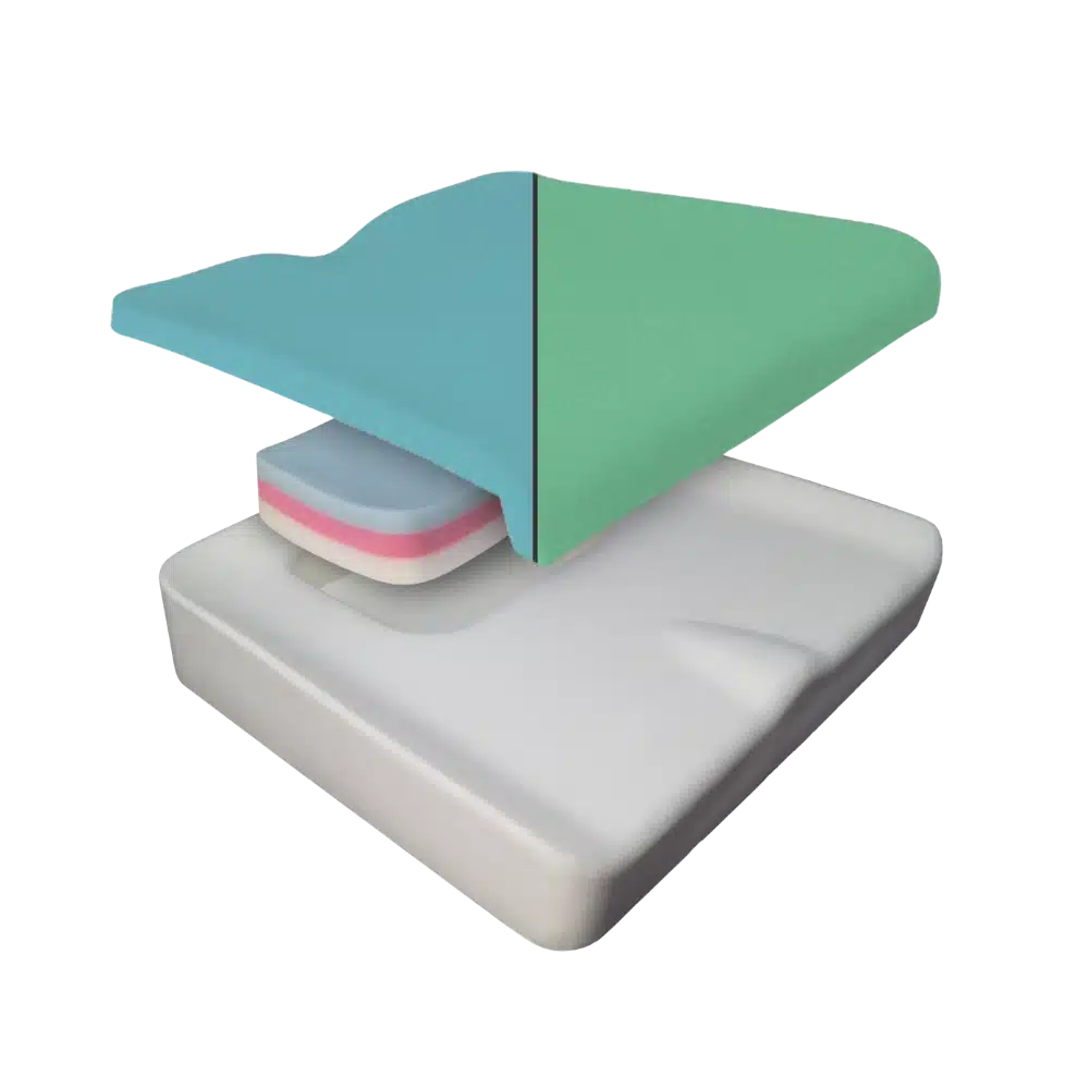 Estos cojines ofrecen una excelente protección de la piel y posicionamiento, con un top de espuma SunMate FRG (XXSoft en azul, MedSoft en verde) y un inserto de espuma multicapa en la zona isquial para un alivio eficaz de presión y soporte sacro. La funda CoolCore se incluye de serie, proporcionando comodidad y regulación de la temperatura.